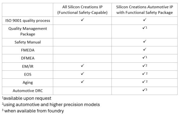 The company has Silicon Creations has a team of greater then 10 engineers who have completed educational training in the field of semiconductor for automotive applications including the SemiConductor – Automotive Functional Safety Professional (SC-AFSP) course offered by SGS-TÜV, demonstrating the dedication to ISO 26262 and ISO 9001 quality assurance and functional safety expertise. Through Silicon Creations' dedication to quality and standardized processes, a fundamental element in developing automotive silicon IP, customers are assured of reliable and high-quality IP that minimizes SoC integration risks and meet industry-leading design requirements.